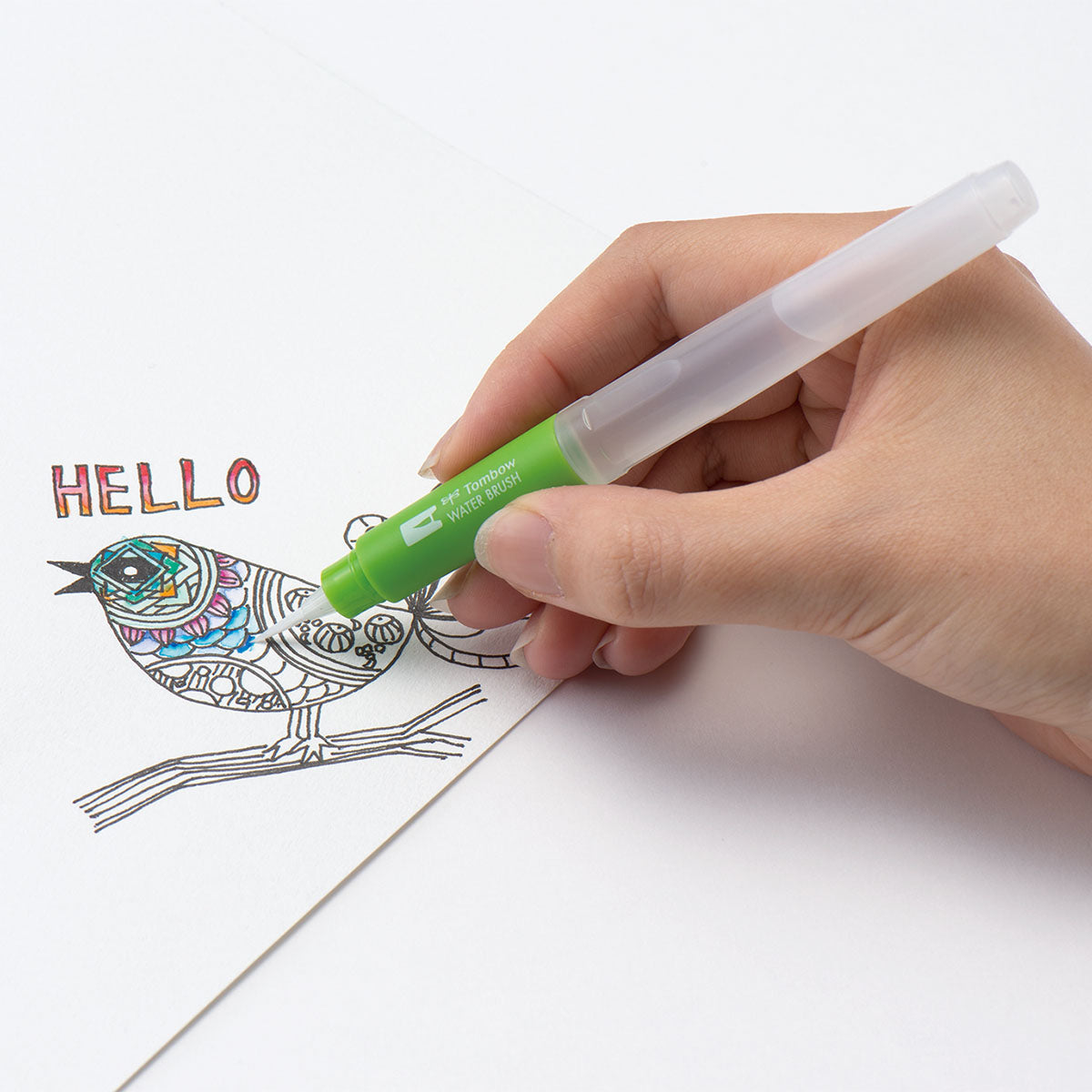 Tombow Empty Water Brush Pen, Fine, är en påfyllningsbar pensel som gör arbetet med vattenbaserade medier enkelt och flexibelt. Vattenflödet styrs genom att försiktigt klämma på skaftet, vilket ger mjuka washes, subtila blandningar eller precisa detaljer beroende på hur hårt du trycker.